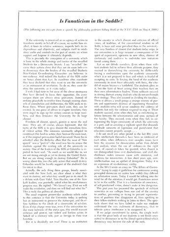 Is Fanaticism in the Saddle? (Tile following are excerpts from a speech by philosophy professor Sidney Hook at the N.Y.U. Cilib on May 4, 1968.)