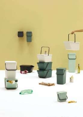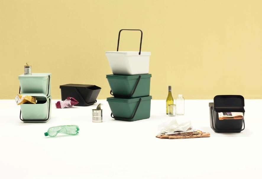 •En un cubo con compartimentos. Es de acero, lleva pedal y esconde tres cubos en su interior. Cubo BO, 199 € en brabantia.com.