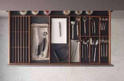 Composición de accesorios para cajones superiores (hay muchas opciones; desde 60 hasta 120 cm), obra de José Antonio Santos para la firma Santos
