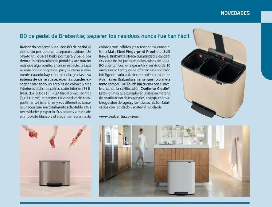 Tener una cocina limpia y ordenada se antoja imprescindible en cualquier hogar. Por ello, entre la multitud de productos de diseño, funcionales y sostenibles que propone la marca holandesa Brabantia, su cubo Bo Touch es un imprescindible de esta temporada. Puede pasar perfectamente por un mueble más; tiene todo lo que se necesita para separar fácilmente los residuos; cuenta con dos cubos interiores extraíbles para dos tipos de restos (ampliable a 3) y, además de encajar perfectamente contra la pared, es muy estable gracias a sus patas ajustables antideslizantes. www.brabantia.com/es