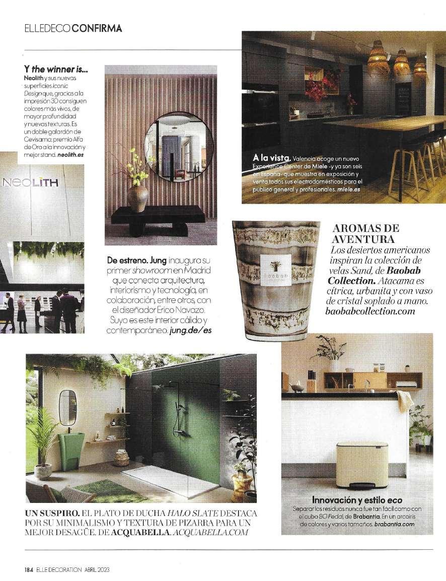 Decosan, empresa dedicada a la fabricación de mobiliario y complementos de baño, presenta su nueva colección Atelier de muebles de baño Diamond. Dicha línea se caracteriza por dos rasgos exclusivos: un tirador inglete en forma de diamante y la veta continua de la madera en toda la longitud del mueble. El tirador Diamond es exclusivo de esta gama y debe su nombre al corte de doble bisel interior y exterior que reproduce la talla de un diamante. Mientras que el uso de la veta continua confiere un valor añadido, ya que las piezas son seleccionadas y numeradas cuidadosamente en el taller, resaltando así la belleza natural de la materia prima utilizada. www.decosan.com