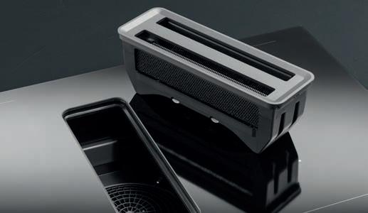 La nouvelle disposition de la hotte améliore les qualités d’aspiration et l’espace disponible sur la table de cuisson. La version filtrante rénovée ne nécessite pas d’installations particulières et permet un retrait aisé des filtres par le haut, rendant l’entretien courant pratique. La commande intégrée de la hotte sur le Touch Control offre un démarrage automatique pratique pour capturer immédiatement les odeurs.