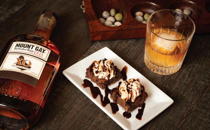 Chocolate brownie with molassesinfused icing. A sweet nod to Mount Gay’s sugarcane roots and the perfect ending to the evening