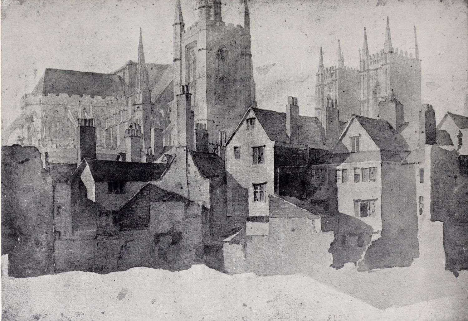 traditions of the earlier English water-colour painters, and to his capacities as a teacher. The second plate in this volume is a reproduction of one of Cox’s drawings of this period. The original water-colour, Old Westminster, is probably one of the most successful of Cox’s purely architectural drawings; it might almost pass for a Girtin.
