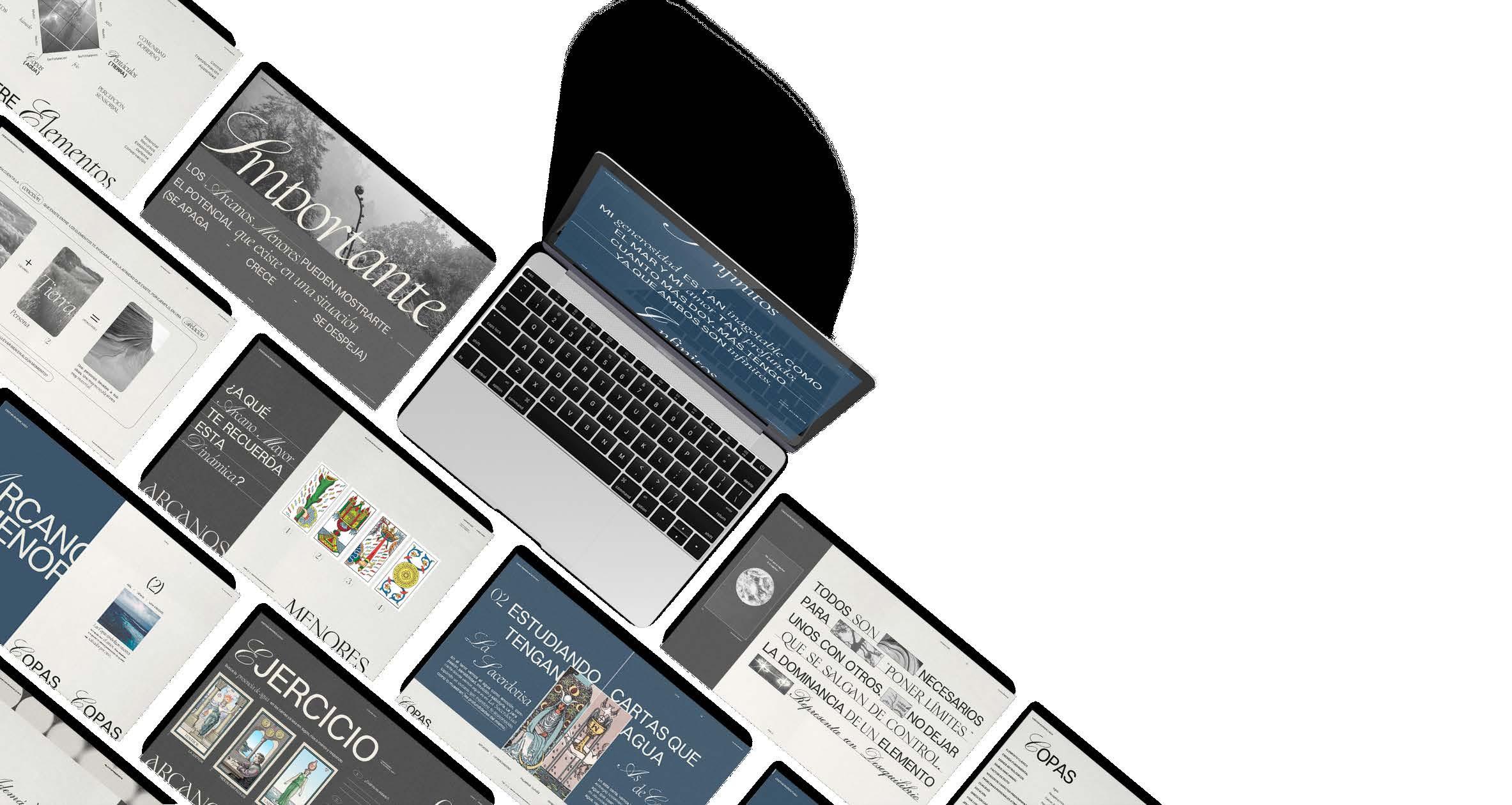 Presentaciones diseñadas para ser posteriormente subidas a una plataforma educativa online, donde los alumnos acceden al contenido con una suscripción. Se trabajó un curso de tarot dividido en 6 presentaciones, esta es la de Arcanos Menores.