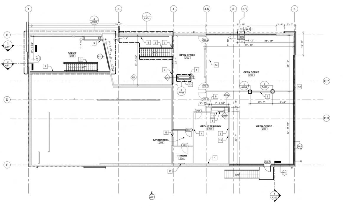 This commercial bank is located in Evansville, IN, and was designed by Darren Morley and Kevin Valentino. My responsibilities in the project were to build a set of construction documents that contained floor plans, life safety plans, enlarged plans, ceiling plans, roof plans, restroom details, elevations, wall details, and schedules.