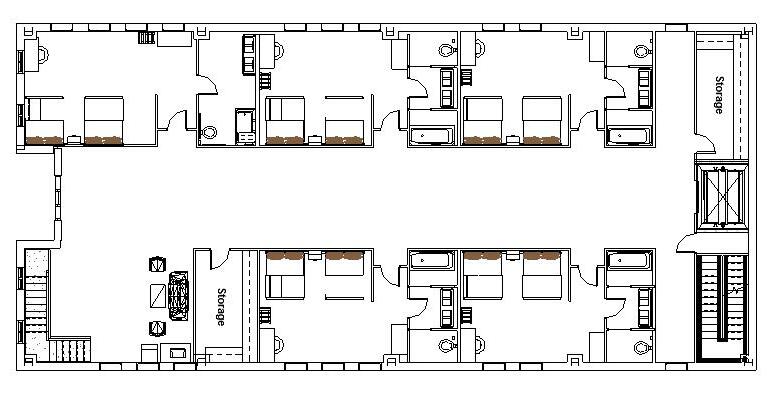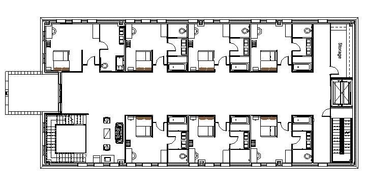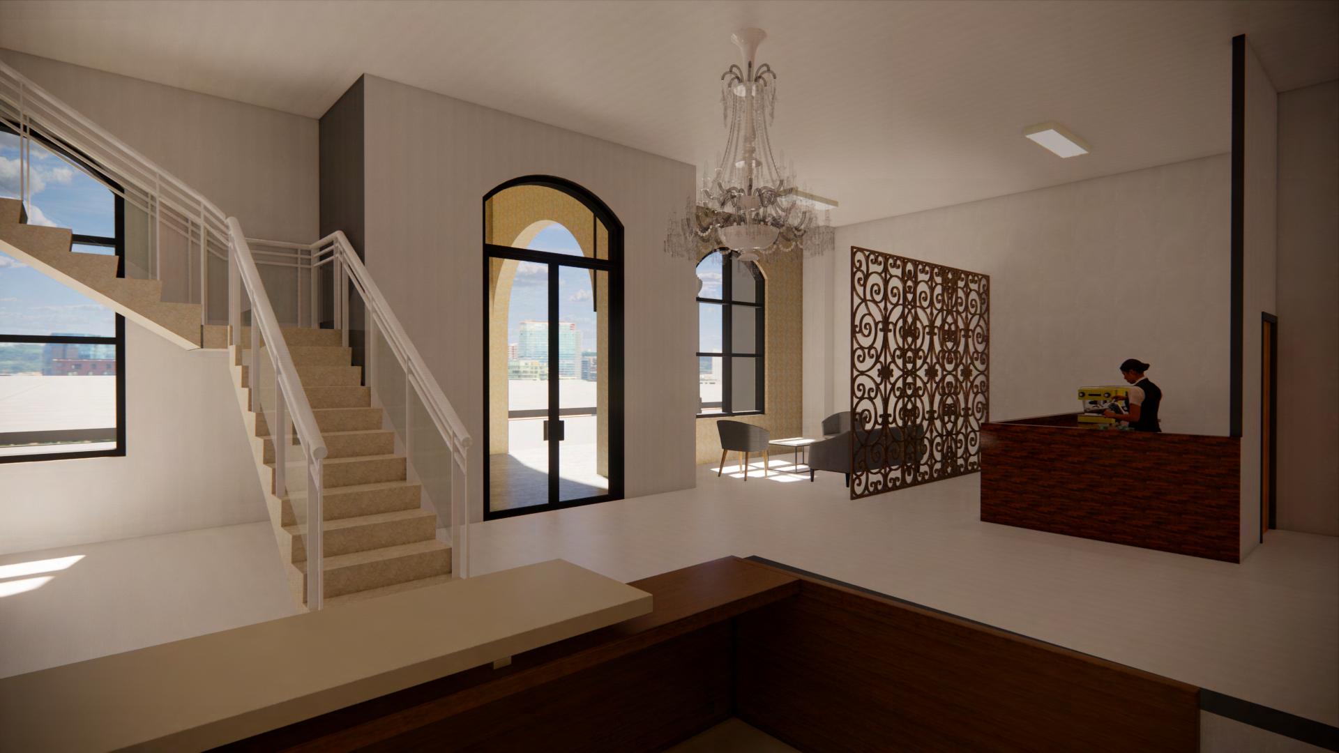 The objective of this project was to come up with preliminary designs for a new boutique hotel. The purpose of this was to determine the feasibility and design options and was not intended for construction. This hotel contains a mix of modern and historic elements that fit well in the neighborhood provided. Within its four floors, there are two different room styles, a workout space, a gift shop, a library, a computer station, a conference room, a yoga room, a coffee shop, and a rooftop/restaurant area.