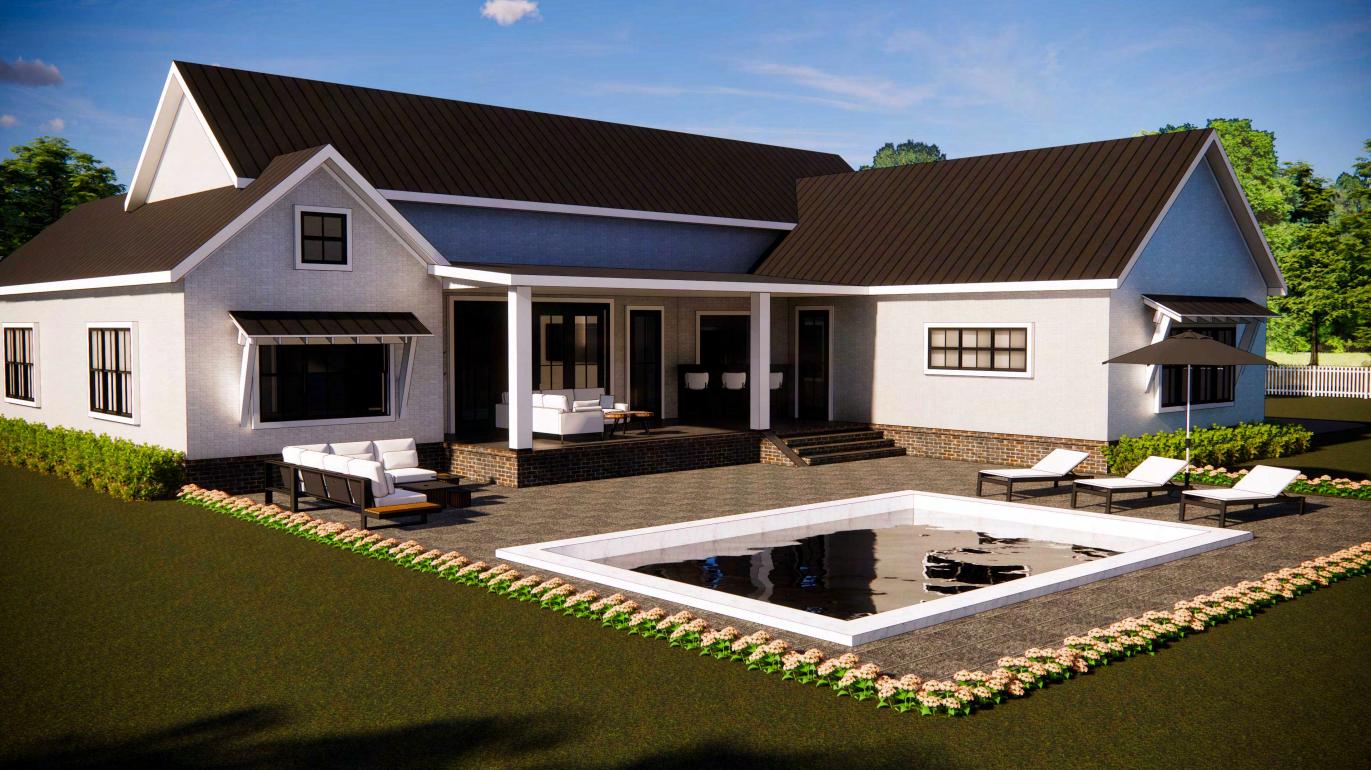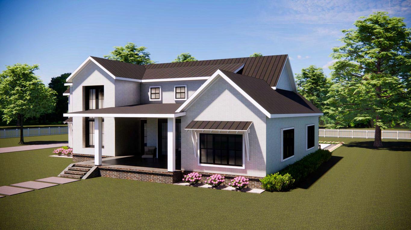 This modern farmhouse concept was first designed in Revit and then modeled in Sketchup. The project consists of a 3,500 square-foot three-bedroom house with an open space floor plan and a backyard area. Due to the large windows, plenty of natural light will be allowed to enter the home.