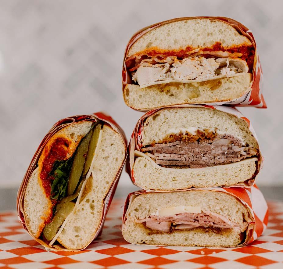 Turkey Clubhouse ~ House smoked shaved turkey breast with smoked bacon, lettuce, tomatoes, cheddar cheese and mayonnaise on toasted cranberry sourdough