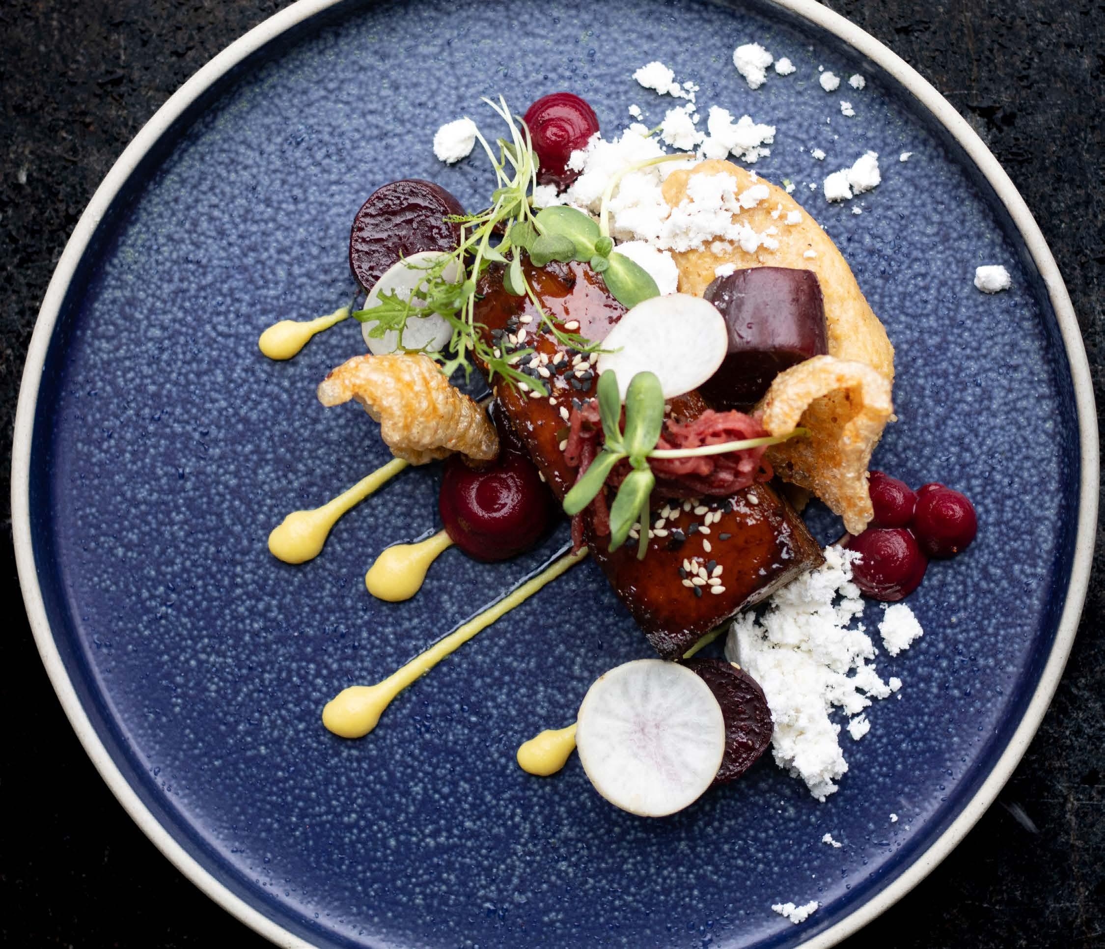 Confit duck tortellini, figs, rosemary duck jus, shallot, honey roasted local parsnip