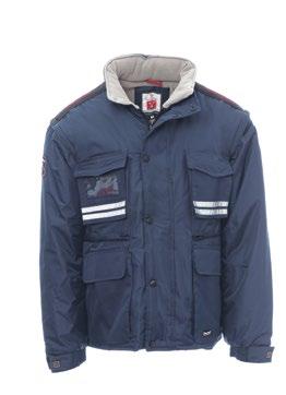 • Zip davanti con doppio cursore e patta con chiusura velcro, maniche con polsino elastico e alamaro con velcro. Doppie cuciture in contrasto e rinforzate su maniche, fianco e dietro. 2 tasconi in vita, 1 taschino