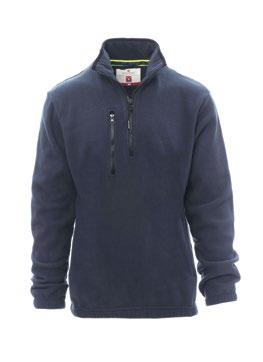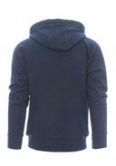 • Colletto alto, chiusura centrale con zip. Polsi e fondo in tessuto elasticizzato, cappuccio fisso regolabile