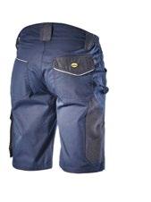 • Doppie cuciture in contrasto e rinforzate su gamba interna, esterna e dietro. Tasche anteriori a taglio classico