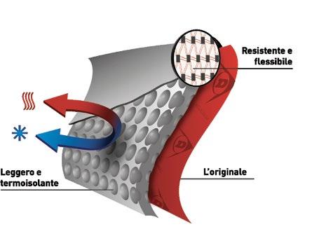 • Fettuccia parasudore bianca. Tasca porta cellulare/mascherina sul fianco sinistro con travetta rossa.