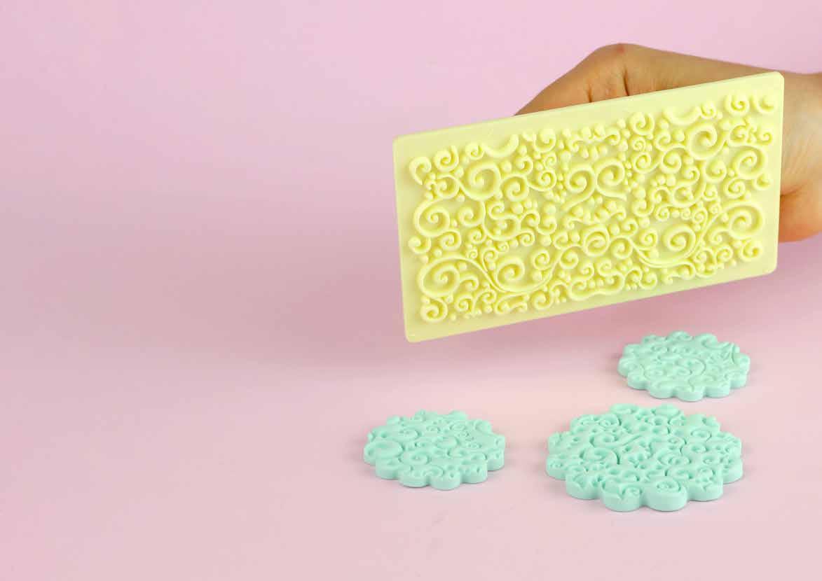 Use os carimbos para criar lindas texturas em massas. Ganhe tempo e inclua muitos detalhes!