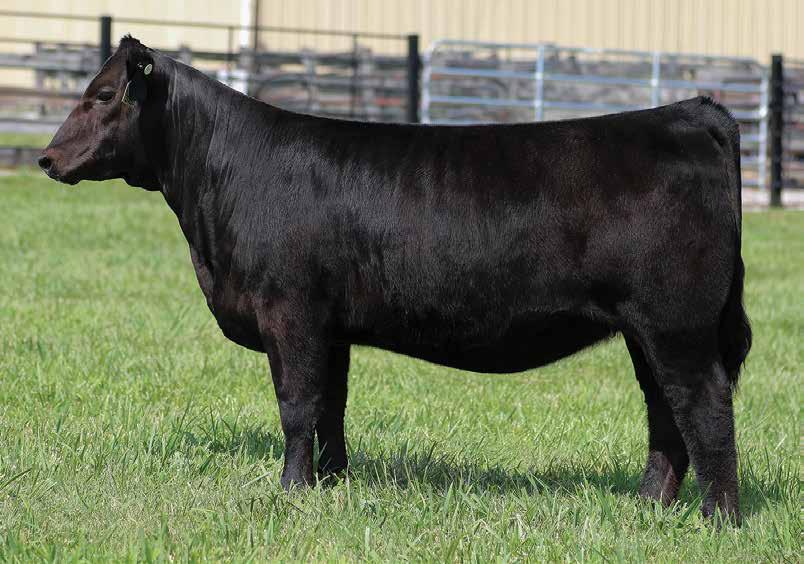 I This striking young female combines elite maternal strength with exceptional eye appeal. Sired by OMF Epic E27 and backed by the HILB/JASS cow family, 131J brings power, structural integrity, and strong EPDs into one impressive package. She boasts a CE of 15.3, BW of -1.8, and growth figures in the top percentiles for WW and YW. Deep-bodied, bold-ribbed, perfect udder, and sound on the move, she’s exactly the kind to build a program around. She sells with a fancy heifer calf at side, giving you a two-for-one opportunity backed by proven cow family genetics. Whether you’re looking to compete, build your herd, or add consistency to your lineup, Grand Love 131J is the kind you’ll want branded with your prefix. Sells AI’d to Reckoning due in January.