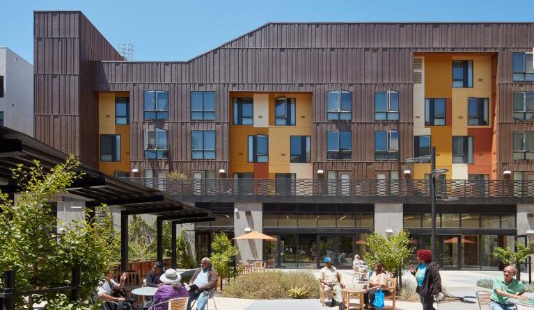 Figura 65:Fachada principal. Fonte: https://www.archdaily.com/903815/drgeorge-w-davis-senior-residence-and-senior-center-david-baker-architects,