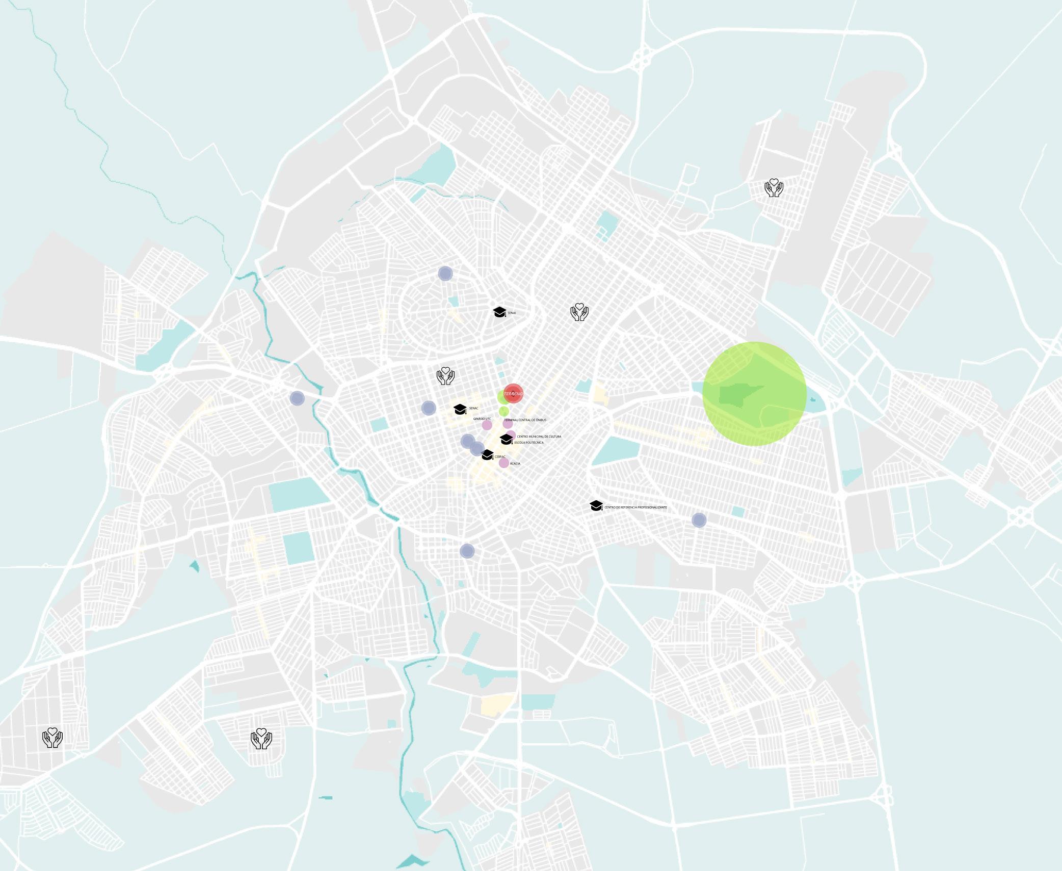 A área de implantação está situada nessa última, e ocupa um quarteirão inteiro, fazendo as esquinas da Av. Brasil, e da Av. Monsenhor Eduardo.