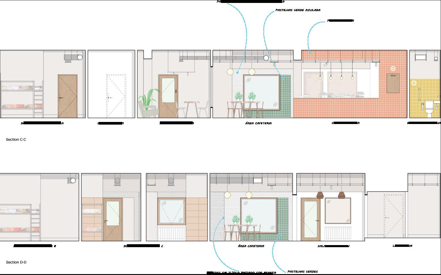 Figura 54: Cortes C e D humanizados.Fonte:https://www. archdaily.com/950057/shelter-from-the-storm-hollandharvey-architects; modificado pela autora