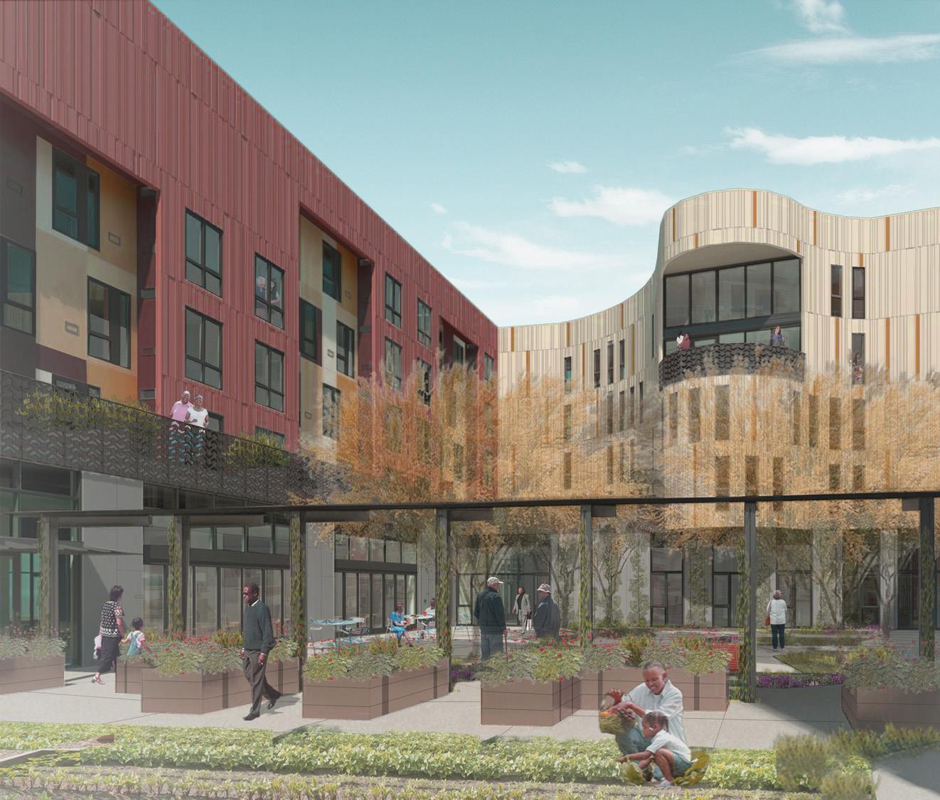 Figura 60: Pátio interno .Fonte: https://www. archdaily.com/903815/dr-george-w-davis-seniorresidence-and-senior-center-david-baker-architects