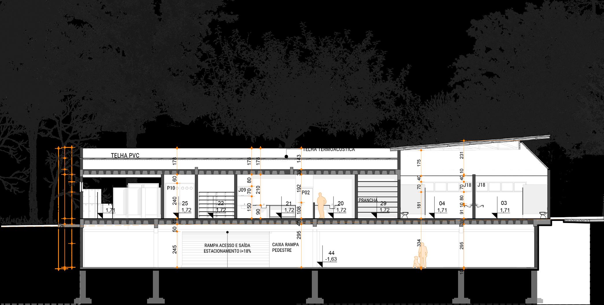 Figura 53: Cortes A e B humanizados.Fonte:https://www. archdaily.com/950057/shelter-from-the-storm-hollandharvey-architects; modificado pela autora