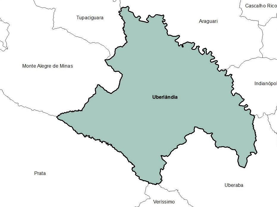 Figura 68: Mapa Uberlândia. Fonte: https://www.mapasparacolorir.com. br/mapa-municipio-mg-uberlandia.php modificado pela autora