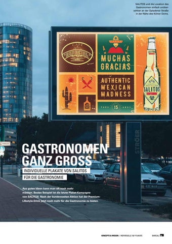 GASTRONOMEN GANZ GROSS INDIVIDUELLE PLAKATE VON SALITOS FÜR DIE GASTRONOMIE Aus guten Ideen kann man oft noch mehr machen. Bestes Beispiel ist die letzte Plakat-Kampagne von SALITOS. Nach der bundesweiten Aktion hat der PremiumLifestyle-Drink jetzt noch mehr für die Gastronomie zu bieten.