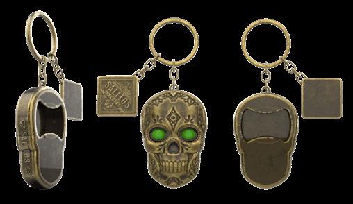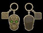 Der Schlüsselanhänger ist aus einer hochwertigen Zinklegierung gefertigt, die ihm eine besondere Robustheit und Langlebigkeit verleiht. Das Candy Skull Design und die beiden grünen Steine, die als Augen dienen, verleihen ihm eine besondere Note und einen Hauch von Exklusivität.