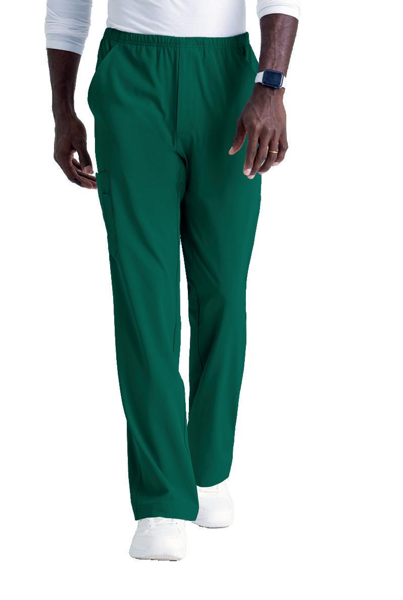 5-pocket, encased elastic waistband with drawcord, zip-fly, on-seam front pockets, top-entry cargo pockets, inner thigh gusset, patch back pocket, slim straight pant