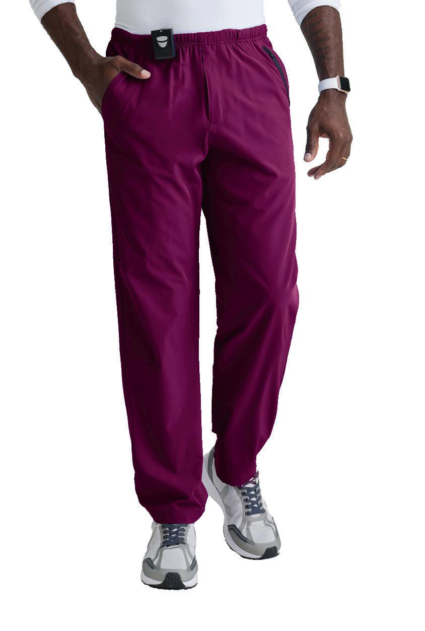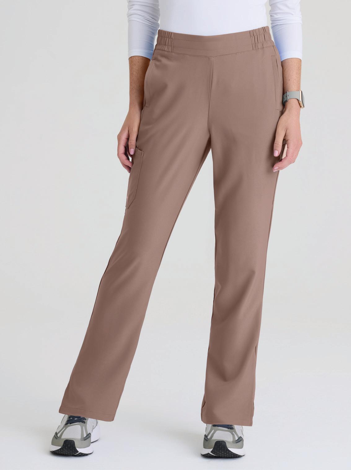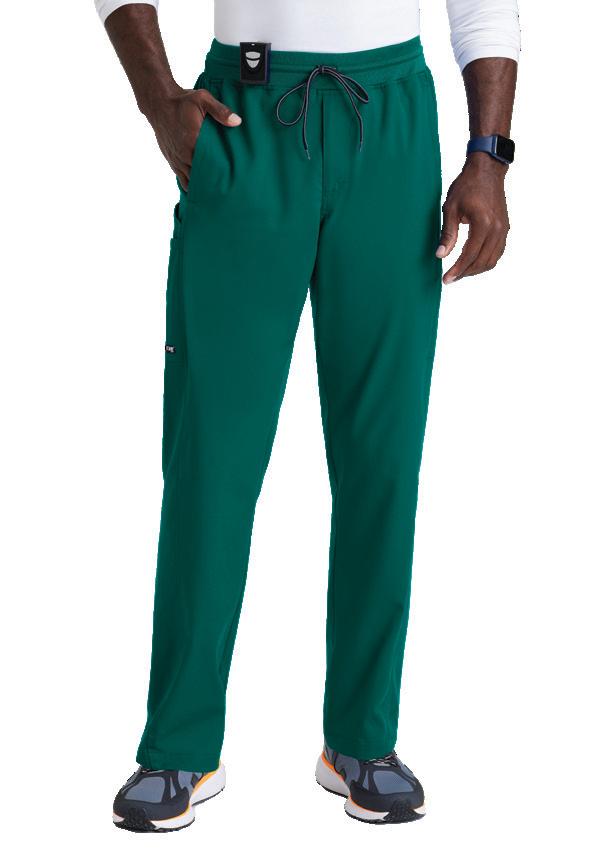 4-pocket encased elastic waistband with drawcord, zip-fly, slanted front pockets, framed zipper cargo pocket, inner thigh gusset, framed zipper back pocket slim straight pant