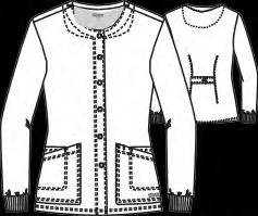 Cuatro bolsillos, cuello en V con costuras en ángulo
