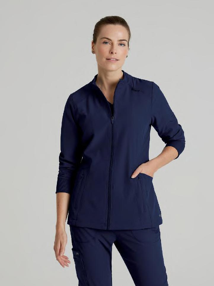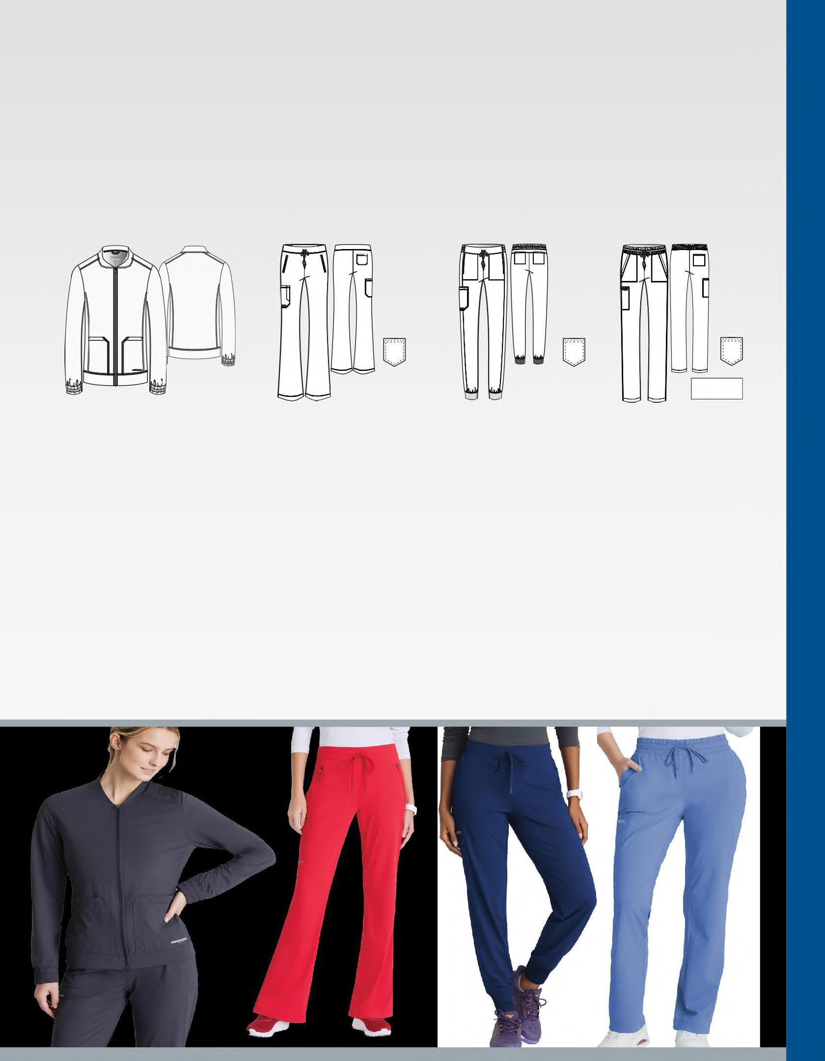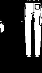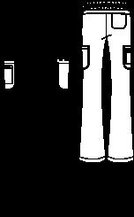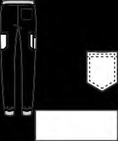 Tres bolsillos, cuello en V acanalado, bolsillo para PDA, detalle de abertura lateral con cinta con el logotipo, inserciones traseras de punto elástico con costura princesa, dobladillo recto