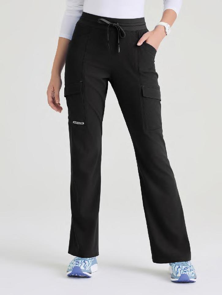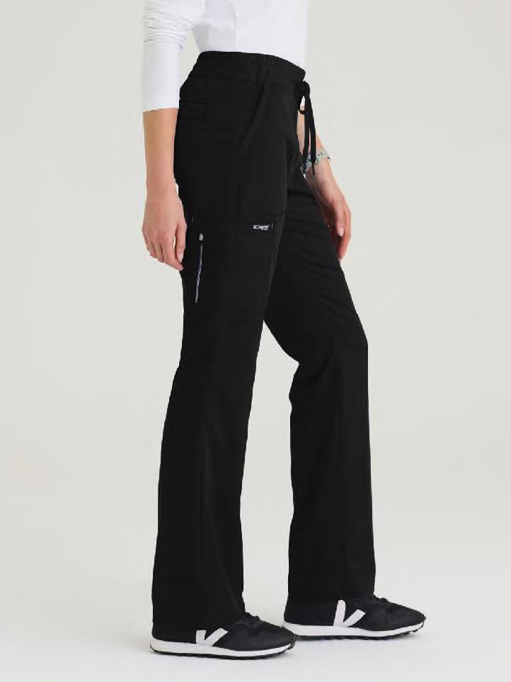 Pantalón recto ajustado con cintura elástica de cordón ajustable y 4 bolsillos, bragueta con cierre, bolsillos delanteros inclinados, bolsillo cargo con cierre enmarcada, refuerzo en la entrepierna y bolsillo trasero con cierre enmarcado