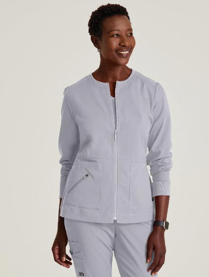 Cuatro bolsillos, cuello con cremallera delantera y canesú, hombros caídos y bajo con banda