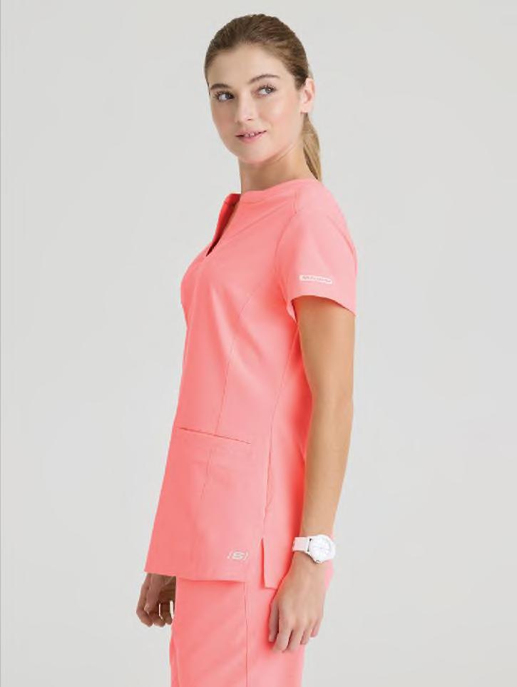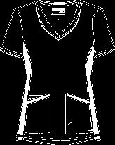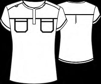 Escote en V con dos bolsillos, mangas casquillo con costuras contorneadas, filipina con canesú trasero activo