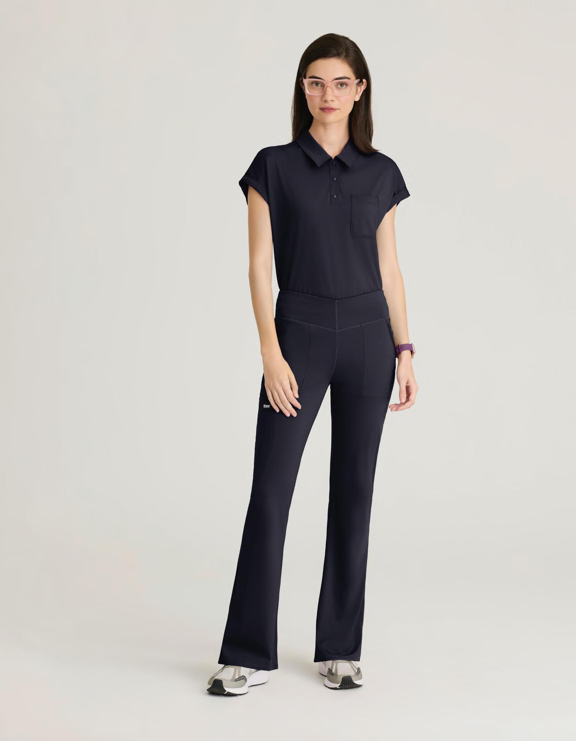 Pantalón de cintura alta con 5 bolsillos, cinturilla en V y pierna ajustada y acampanada