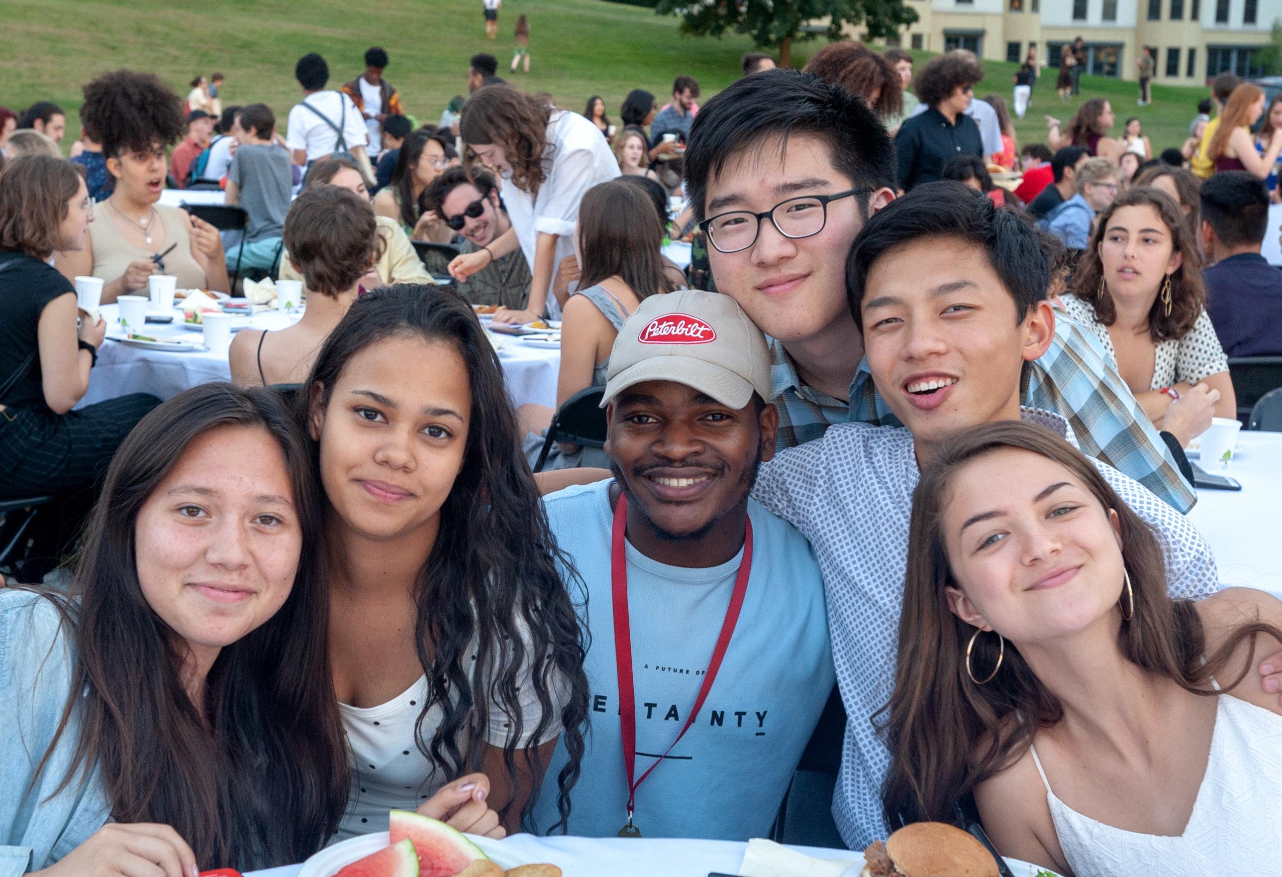 FEATURE First-year students at matriculation dinner, Ward Manor lawn, photo by Karl Rabe