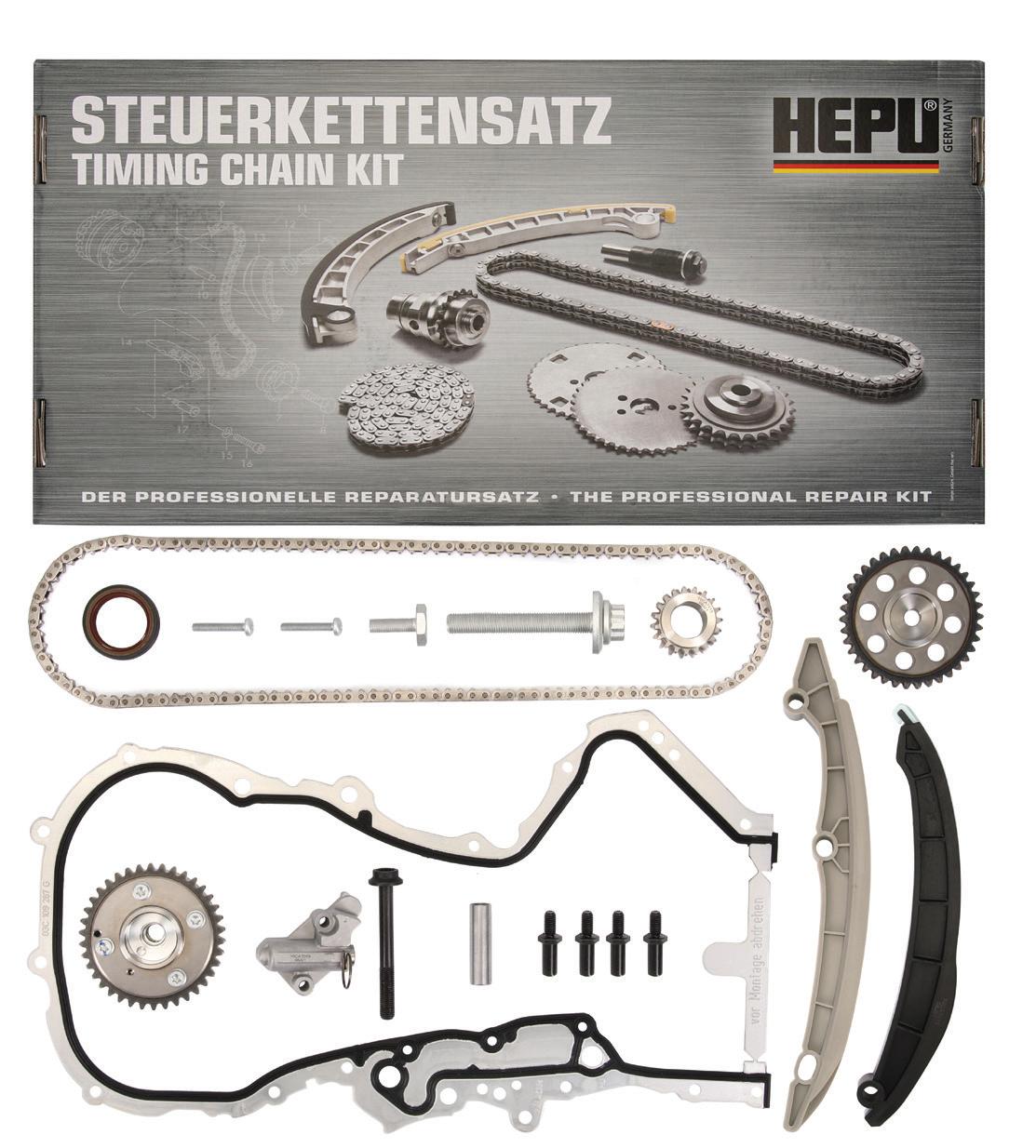 Mi kell egy teljes szervizhez? Láncok, lánckerekek, vezetősínek, feszítők, valamint a szükséges segédanyagok: a Hepu vezérműláncszettek mindezt tartalmazzák! A Hepu alkatrészgyártói tapasztalata több mint 50 évre nyúlik vissza. Az ezen idő alatt összegyűjtött szakértelem, a németesen precíz gyártástechnológia és a minőség iránti elhivatottságuk a garancia, hogy vezérműláncszettjeikben a részegységek tökéletesen illeszkednek egymáshoz. Mindezekkel