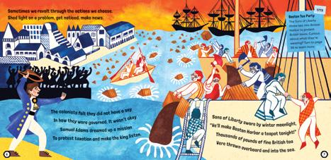 From the Boston Tea Party to the Capital Crawl, inspire young activists with this bold nonfiction picture book that explores 25 moments of protest, resistance, and revolution in American history. In celebration of the United States’ 250th birthday, teach kids how we campaign and vote. We challenge tradition. Protest is American by definition! Lyrical text inspires young readers to make change in the world and info boxes on each page support learning. Endnotes include a timeline and map of the 25 protests, and dive deeper into each event to further learning beyond the book.