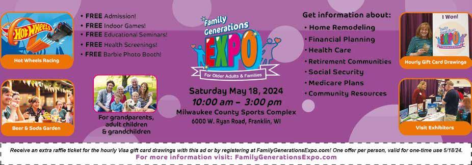 10 Bargain Hunter 4/26/24 PH 262-639-3050 Email: jeff@bhpapers.com Fax 262-639-7820 www.bhpapers.com With Coupon Any purchase over $20 $5.00 OFF Breakfast and Lunch Not valid with other o ers. Expires 5/30/24 Serving the Finest Breakfast and Lunches with Exquisite Silver Settings and Luxury linens Sticky Fingers Special before 10 am every Day 3 Huge Pancakes - 3 Eggs And Choice Of Fine Meat $7.98 15744 W National Ave • New Berlin · (262) 505-5121 VENDOR FINCH’S FREE Admission 5656 So Packard Ave #18, Cudahy WI 53110 Our Expo will include: Vendors selling: • Antiques & Collectibles • New and Used Items • Handmade Crafts and Giftables • Hot Wheels • Avon, L’Bri, & MUCH more! You never know what you may nd and we may have just what you are looking for! VENDOR SPACES STILL AVAILABLE For information call (414)-732-8596 • Randy Finch, Manager or email to: nchsvendorexpo@gmail.com 5656 So Packard Ave #18, Cudahy WI 53110 Open Every Weekend: Friday 11 am to 7 pm, Saturday 9am to 4 pm and Sunday 9 am to 3 pm Indoor Flea Market Open To The Public Vendor Fair Every 2nd Saturday of the Month This Word Search is Presented by 414-418-3667 (DOOR) Sales, Service and Installation of Garage Doors & Openers. Family Owned & Operated Over 35 Years. FREE Estimates