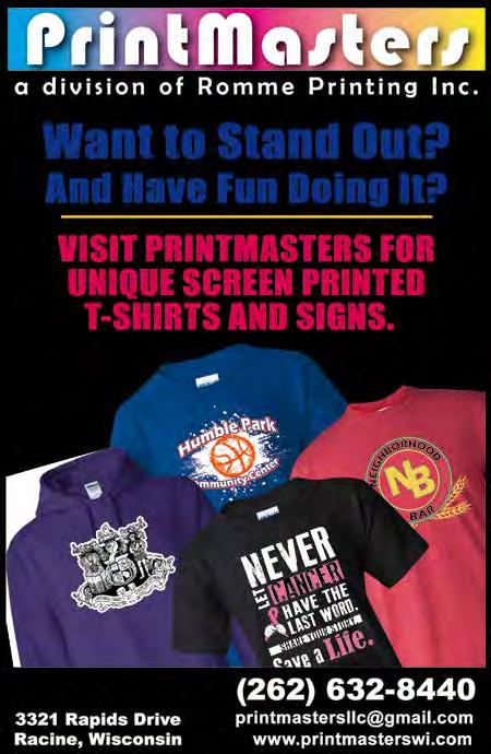 4 Bar gain Hunter 6/7/24 PH 262-639-3050 Email: jeff@bhpapers.com Fax 262-639-7820 • www.bhpapers.com Phone: (262) 748-1428 1830 - 27th Avenue • Kenosha Monday - Sunday 7am - 9 pm Website: www.MoodysSubsAndSweets.com • Moody Cheesesteak • Pastrami • Reuben • Shawarma • Falafel • Meatball Bomber • Chicken Sandwich • Chicken Pesto • Leonardo Da Veggie • Mama Mia • Hercules Ask About Our Gift Certi cate Special 7002 - 30th Avenue • Kenosha, Wisconsin Great Food, Great People and Family Friendly Our Hall is Available for Parties, Reception, Events, Meeting and Any Other Occasions (262) 654-9810 For rent information call Open 7 Days a Week Bar Hours Mon-Thurs 2:00 until Close Fri, Sat, Sun 12:00 until Close with the Best Vapes in Racine TREAT YOURSELF TO GREAT SAVINGS! Posh, Breeze, Lost Mary, Cake, Orion, North, Elfbar, Funky Republic, Mr Fog, Tyson, Death Row. Biggest Selection of DELTA 8 - THC-A in the city. Cigarettes • Tobacco • V a p e • 8atleD • ssalG DBC• &• M o r e • www.facebook/discountcigarettes snapchat@mrvapz4sale instagramdiscountcigs&vape 3417 Douglas Ave. • Racine 262-752-1833 Locally owned and operated since 2013 Open: Mon-Sat 9am - 8 pm, Sun 10am - 7 pm $5.00 Pack of Cigarettes Disposables • Gummies • Pre-Rolls Carts • Edibles & Much More! Tattoos Happy 4th of July! Open: Hours Mon thur Fri 11am to 6pm., Sat appt only. (262) 639-6050 We Do Cover-Ups, Touch-ups and Create Tattoos 3417 Douglas Ave • Racine, WI 53402 Friendly Custom Professional Tattoos ~ Se Habla Español