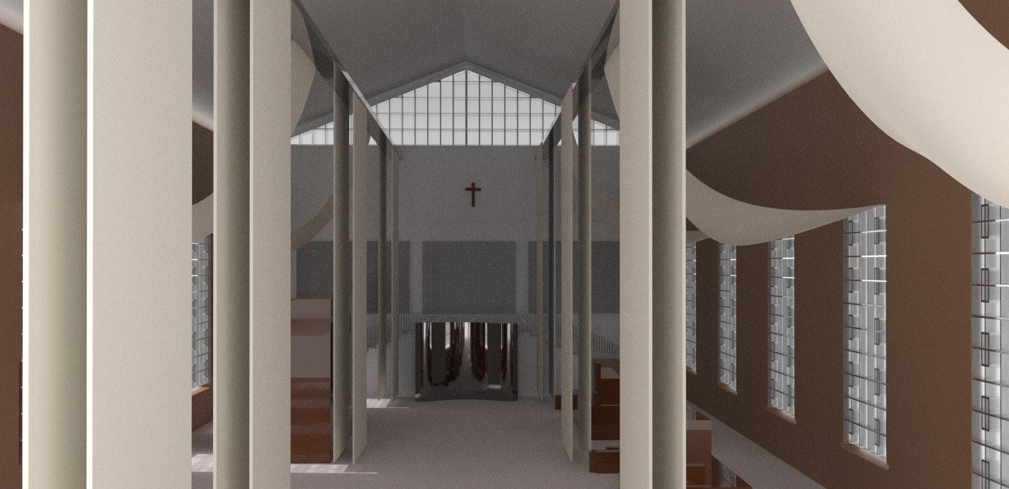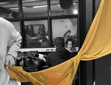 The concept revolves around the preseravation of symmetry, hence the rigid industial structure is highligted through punctual implifications of fabric, deriving from the contrast created by the combination of dry-assambled / linked elements with the fluid nature of different types of fabric.