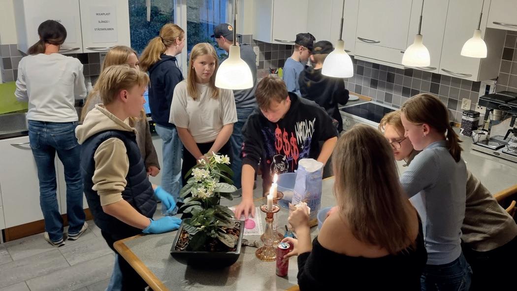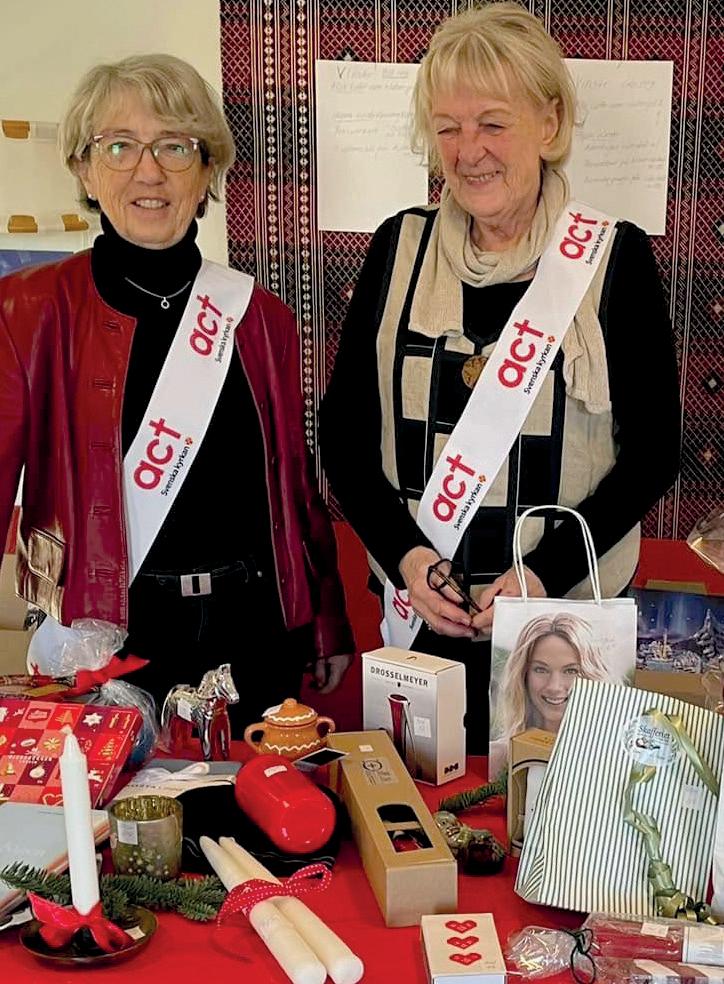 Act Barkåkra gruppen)(Internationella säljer lotter till förmån för julinsamlingen. Julfika finns också att köpa.