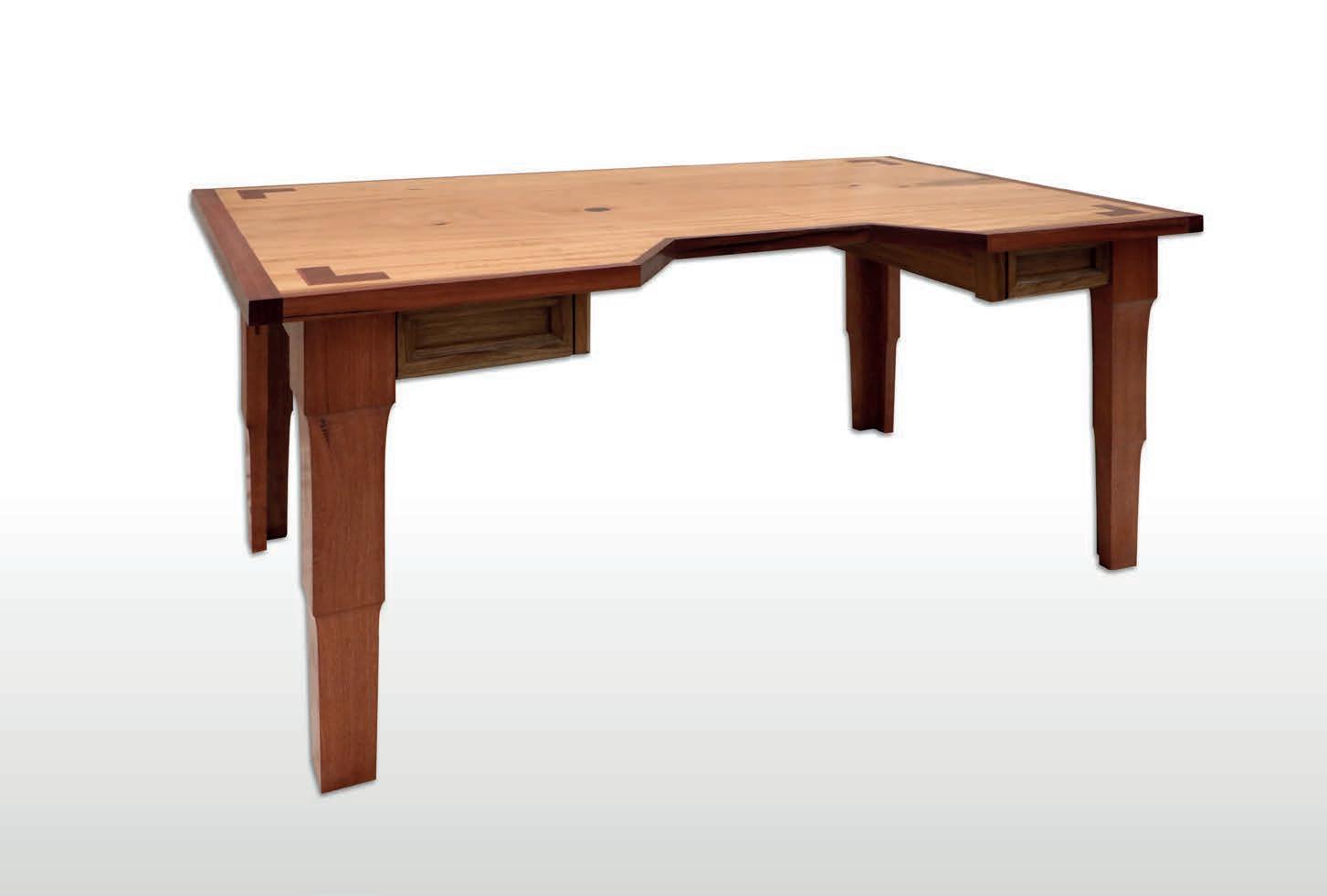 Jarrah edge framing is incorporated to provide contrast, enhancing the visual appeal and defining the desk’s perimeter with a bold accent.