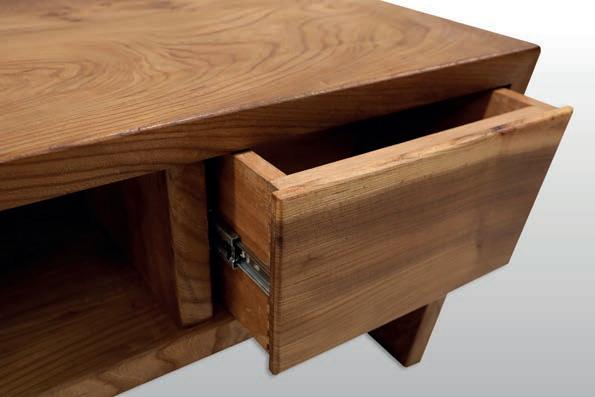 This Cantilever Coffee Table features a striking Elm top, chosen for its rich tones and natural grain variation.