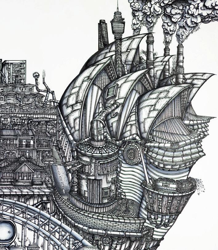 Using pen, I illustrated the varied housing landscape of Australia as a gradient within the confines of an imaginary vehicle, a symbol for directed movement.