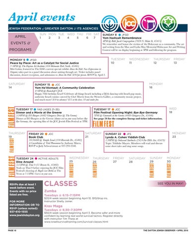 April events JEWISH FEDERATION of GREATER DAYTON & ITS AGENCIES SUN MON TUE WED THU 1 2 3 4 5