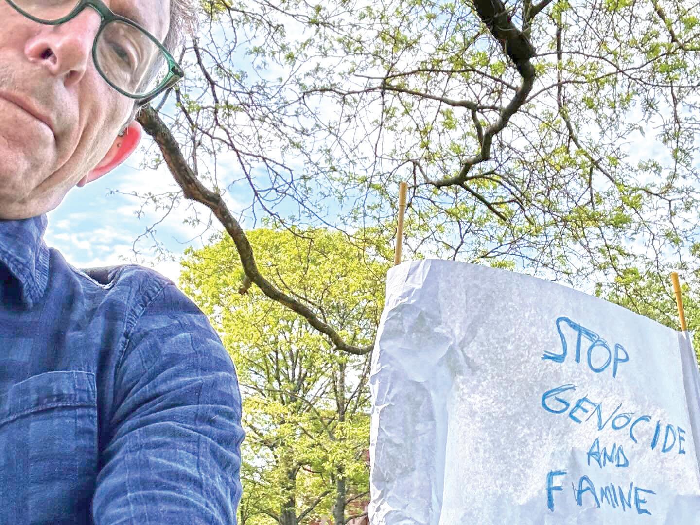 The Miami Student reported that a group of counter-protesters in support of Israel stood nearby the encampment. One student held a half Israeli/half