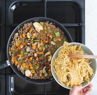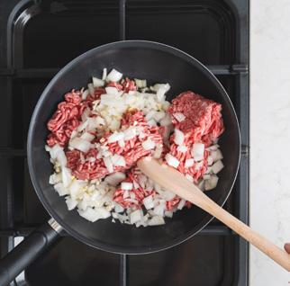 2 STIR-FRY beef, onion and garlic until beef is browned.