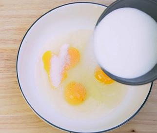 2 CRACK 3 eggs into a bowl and add the sugar.